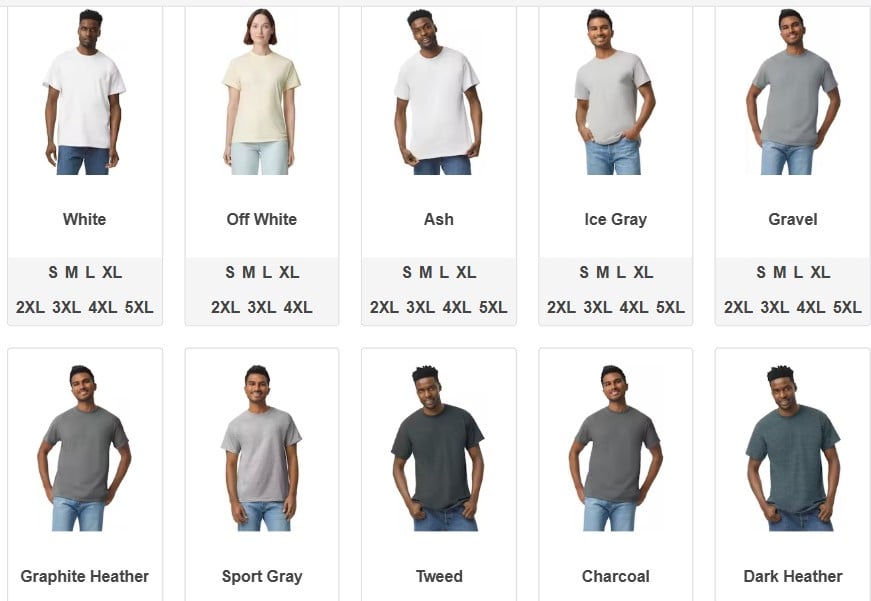 Default shirts are unisex Gildan heavy cotton, for any other styles (softstye, different brand, womens sizing, etc.) please email CustomerSupport@OliveandEmberCompany.com