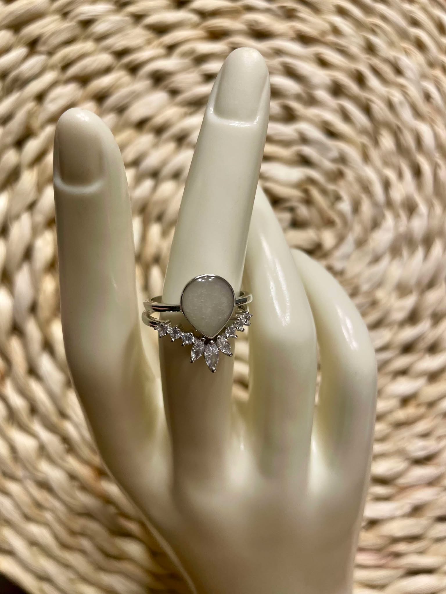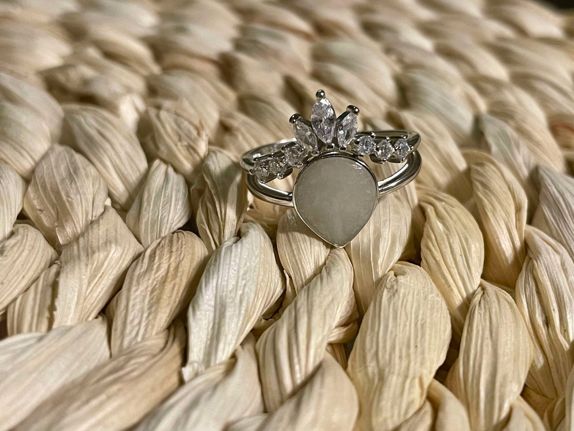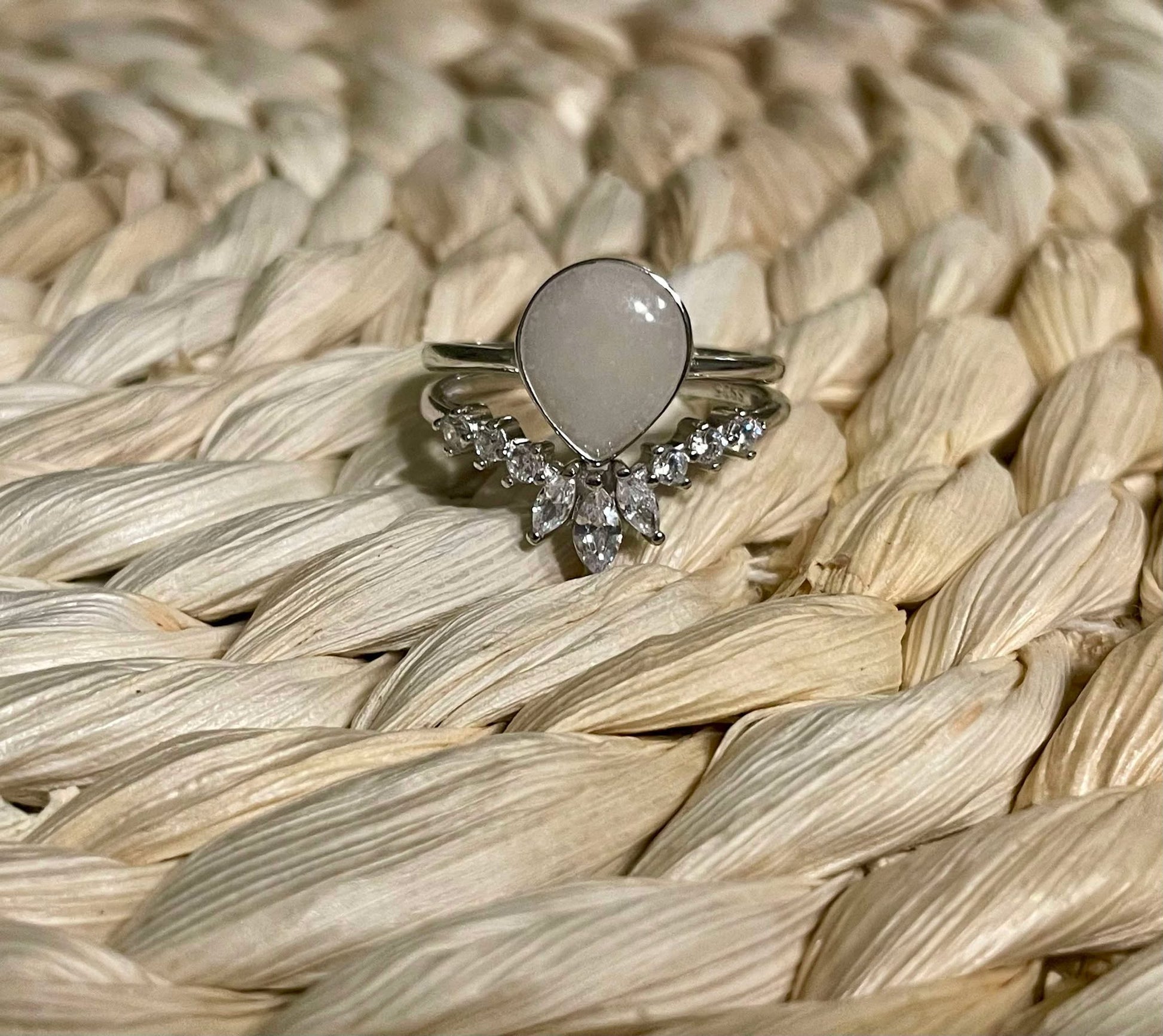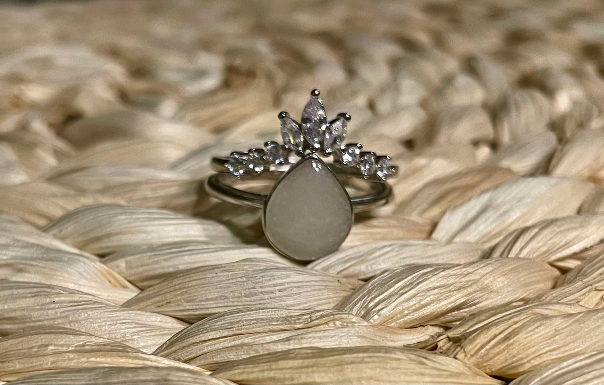 8x10MM Sterling silver (S295) stacking ring set. Cremation ashes or breastmilk. Available in white gold plated or rose gold (plated). Set size (5, 6, 7, 8, 9,10).