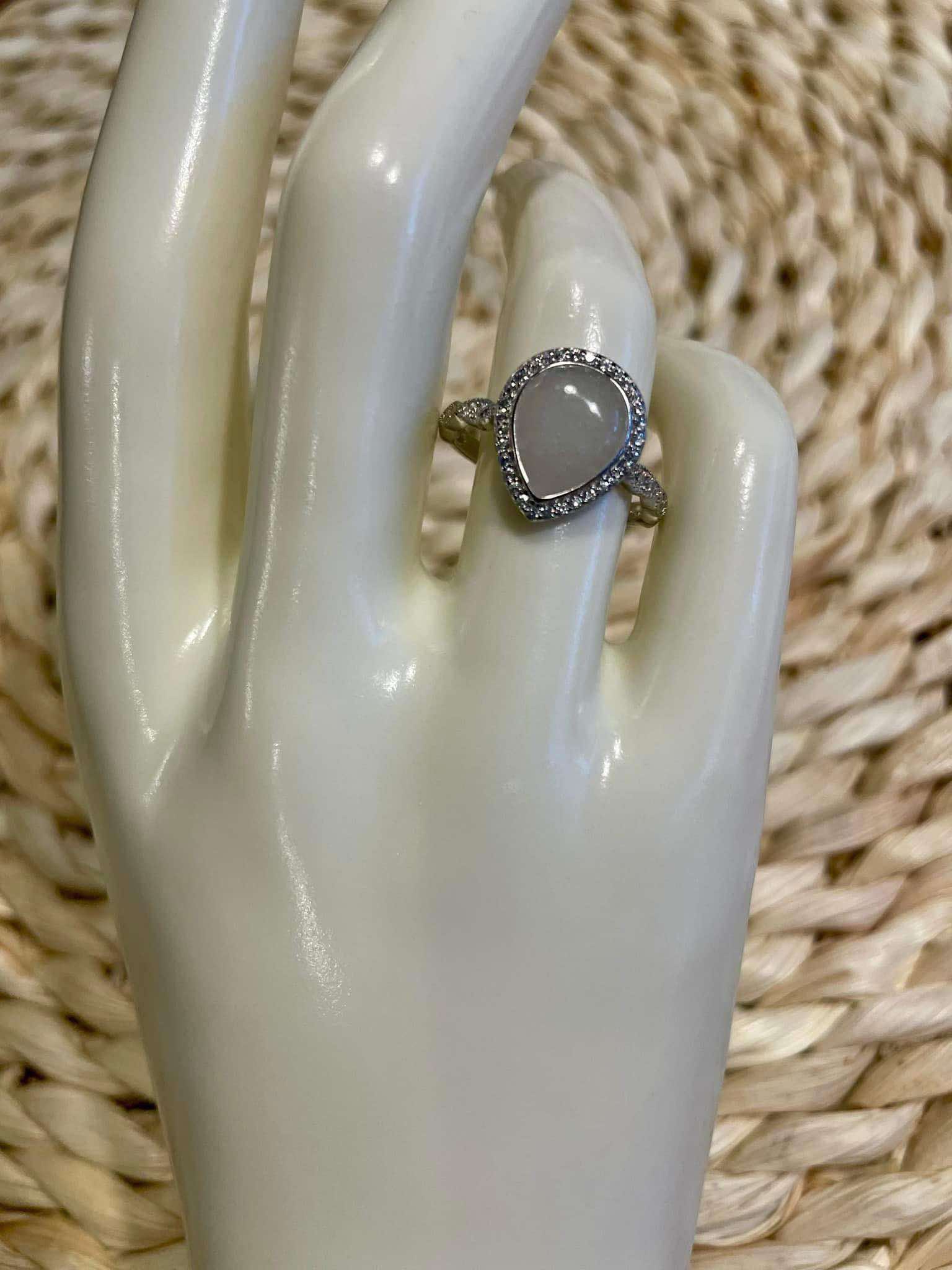 8x10MM sterling silver (S295) halo teardrop ring. Cremation ashes or breastmilk. Available in silver or rose gold (plated). Set size (5, 5.5, 6, 6.5, 7, 7.5, 8, 8.5, 9, 9.5, 10).