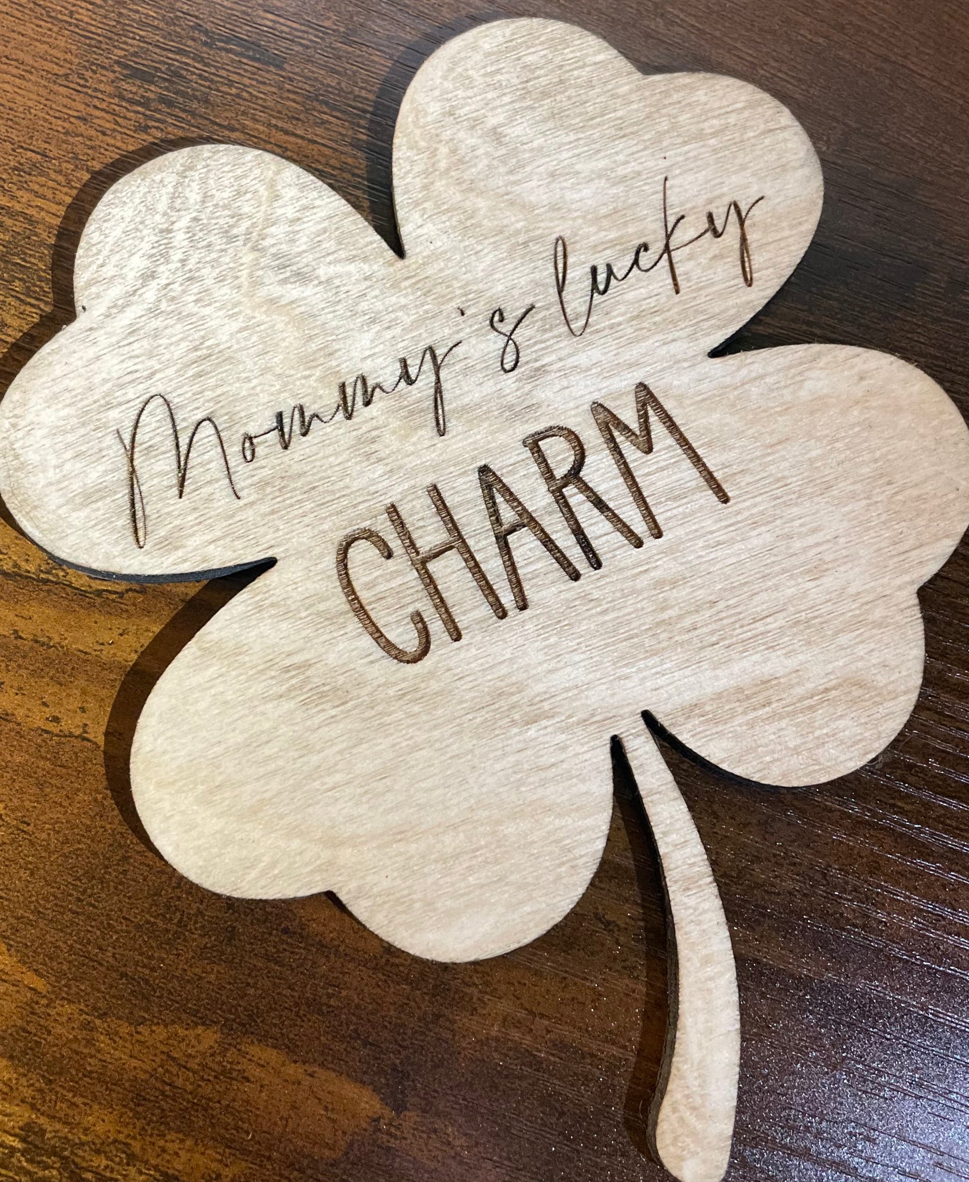 Adorable shamrock St. Patrick's Day Milestone marker! Able to do "Mommy's lucky charm" or "Daddy's lucky charm", for a custom please reach out at CustomerSupport@OliveandEmberCo.com